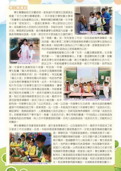 處理不同情緒的技巧等,效果理想。另一方面,本組為四年級至六年級學生舉行「成長的天空」