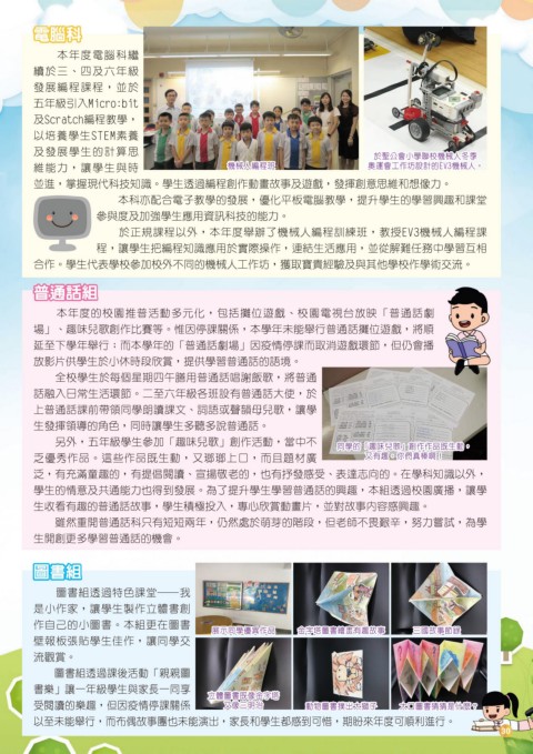 場」、趣味兒歌創作比賽等。惟因停課關係,本學年未能舉行普通話攤位遊戲,將順