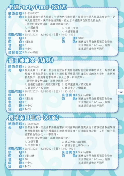 日期/時間: 28/07/2021-18/08/2021(三)11:30-13:00 102