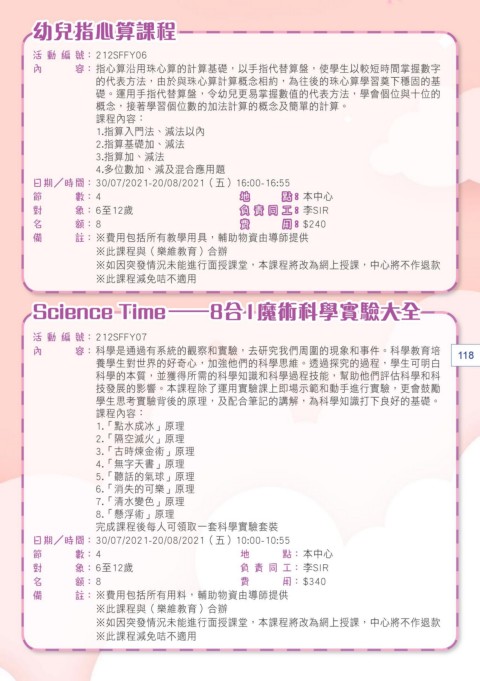 內 容 : 科學是通過有系統的觀察和實驗,去研究我們周圍的現象和事件。科學教育培 118
