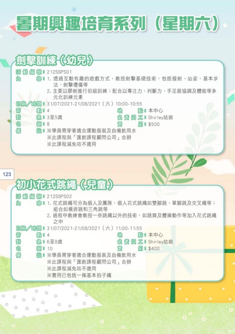 暑期興趣培育系列(星期六)