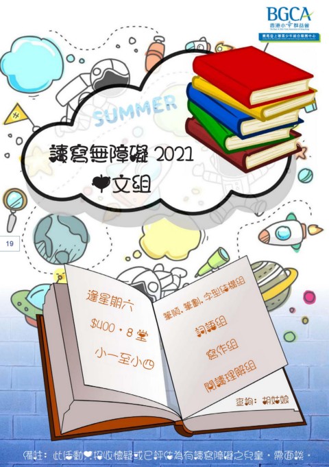 讀寫無障礙 2021 中文組 19 備註﹕此活動只招收懷疑或已評估為有讀寫障礙之兒童,需面談。