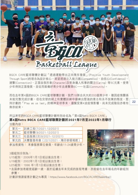 而在去年第4屆的BGCA CARE籃球聯賽計劃,我們18隊合共大約200個青少年,雖因疫情關係