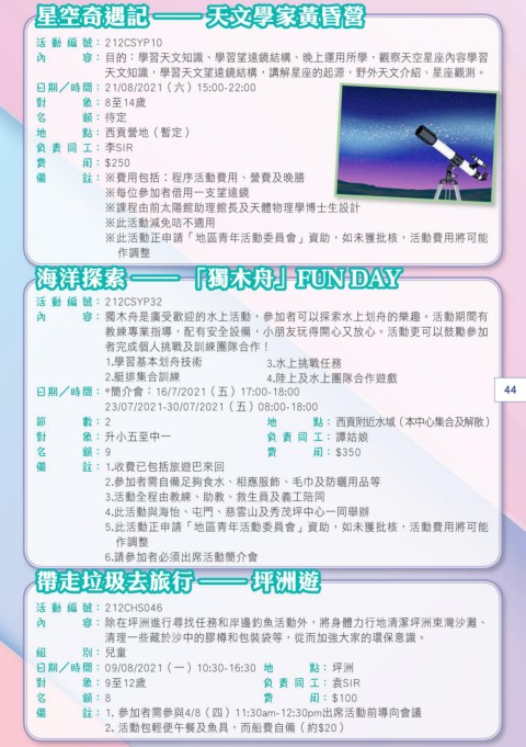 日期/時間: 09/08/2021(一)10:30-16:30 地 點 : 坪洲