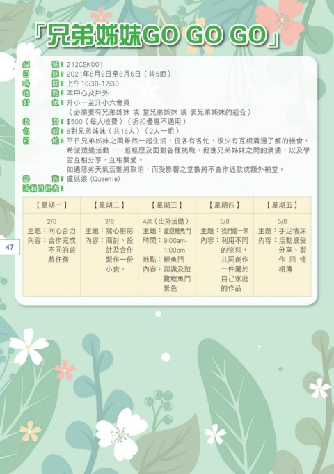希望透過活動,一起經歷及面對各種挑戰,促進兄弟姊妹之間的溝通,以及學