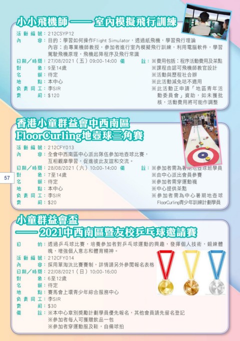 57 對 象 : 7至14歲 ※由中心派出會員參賽