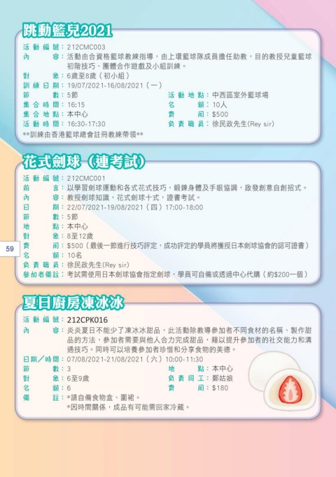 內 容 : 教授劍球知識,花式劍球十式,證書考試。