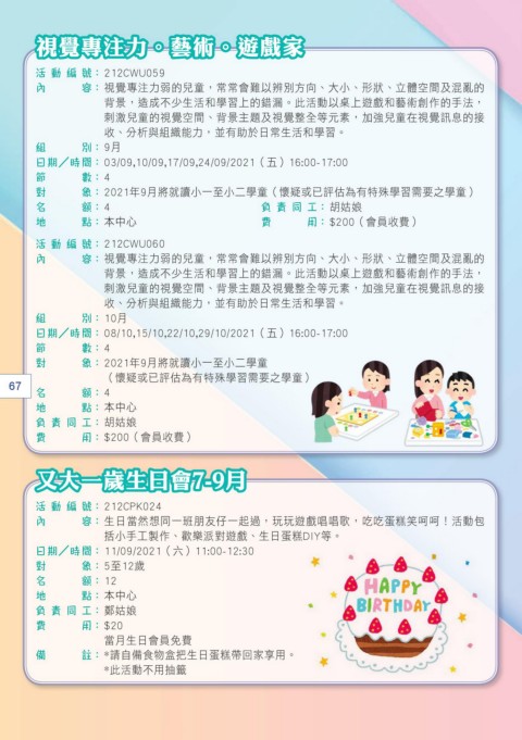 括小手工製作、歡樂派對遊戲、生日蛋糕DIY等。