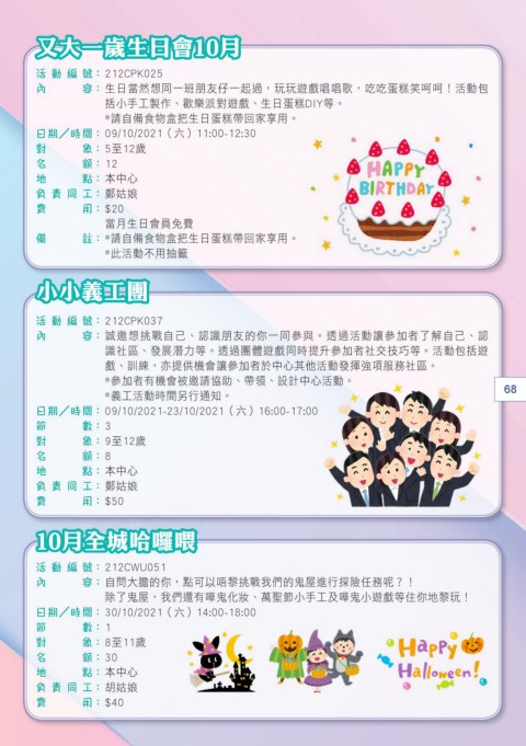 *參加者有機會被邀請協助、帶領、設計中心活動。 68