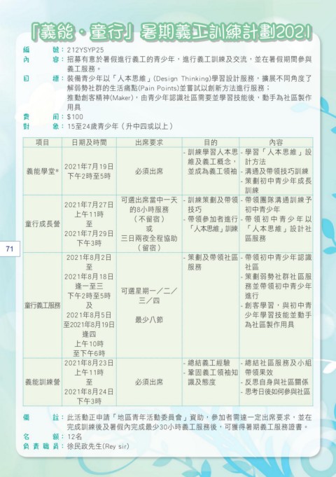 「義能.童行」暑期義工訓練計劃2021