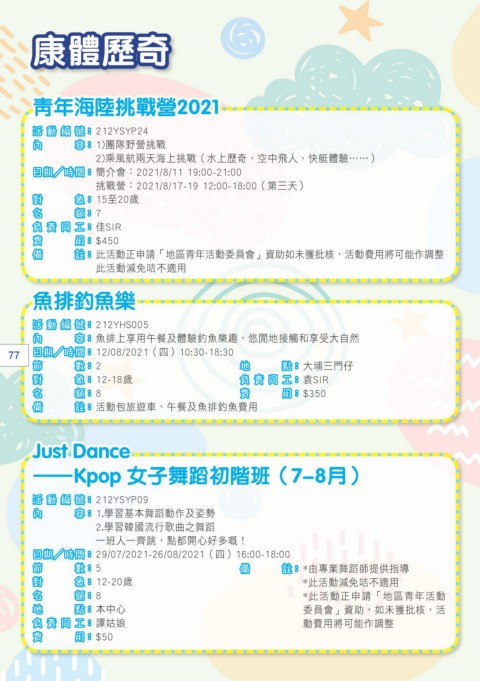 備 註 : 此活動正申請「地區青年活動委員會」資助如未獲批核,活動費用將可能作調整