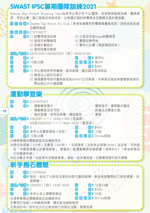 地 點 : 本中心及上環攀登場地 名 額 : 10名