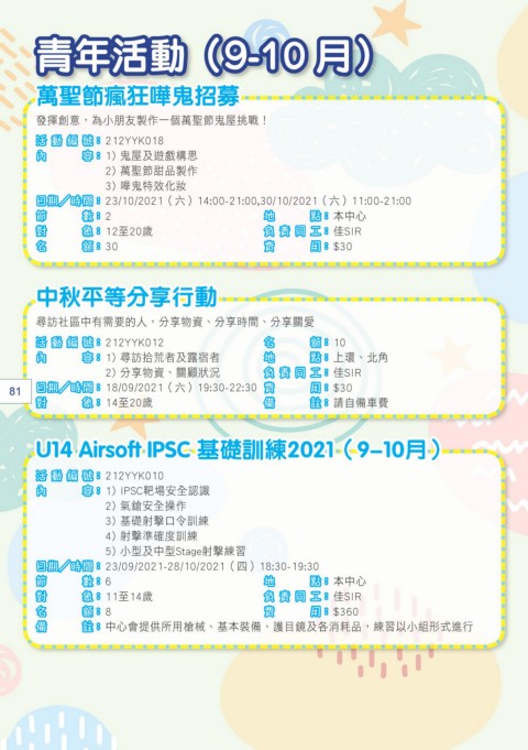 81 日期/時間: 18/09/2021(六)19:30-22:30 費 用 : $30