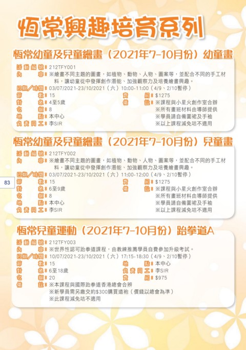 日期/時間: 10/07/2021-23/10/2021(六)17:15-18:30(4/9、2/10暫停)
