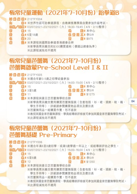 ※新學員需另繳交費用購買芭蕾舞服裝(全套包括:衫、裙、頭飾、鞋、襪、 84