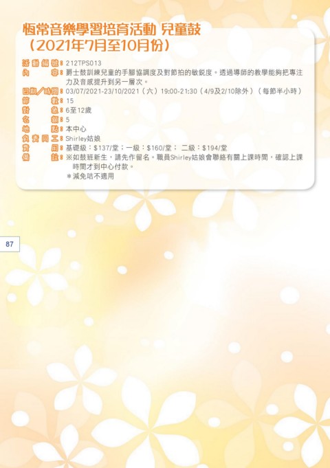 備 註 : ※如鼓班新生,請先作留名。職員Shirley姑娘會聯絡有關上課時間,確認上課