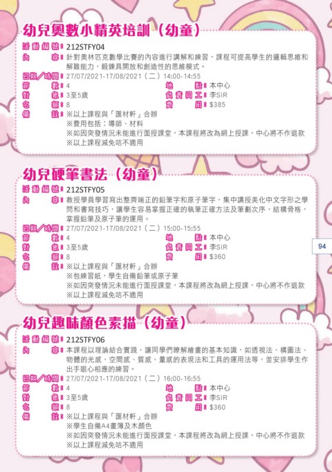日期/時間: 27/07/2021-17/08/2021(二)15:00-15:55