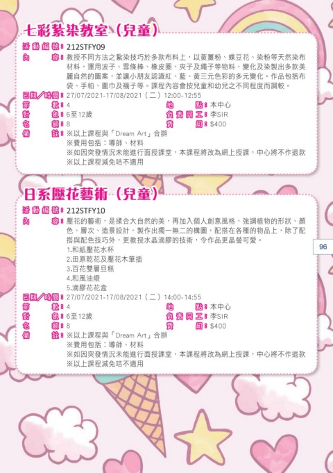 日期/時間: 27/07/2021-17/08/2021(二)14:00-14:55