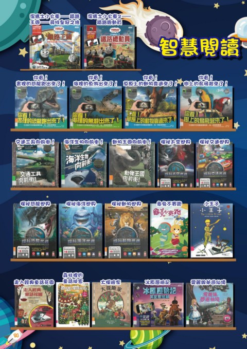 湯瑪士小火車—鐵路 湯瑪士小火車2— 王國—尋找皇冠之旅 鐵路總動員 智慧閱讀 萬花筒 你看! 你看! 你看! 你看! 書裡的恐龍跑出來了! 海裡的魚游出來了! 草原上的動物靠過來了! 樹上的鳥飛起來了! 交通工具向前衝! 海洋生物向前衝! 動物王國向前衝! 探祕太空世界 探祕交通世界 探祕恐龍世界 探祕海洋世界 探祕動物世界 龜兔不賽跑 小王子 森林裡的 走入經典童話花園 童話祕密 大探險家 冰原歷險記 愛麗絲夢遊仙境 14
