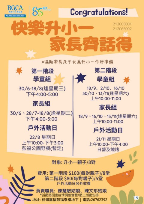 1) 如有需要可以親臨本中心或致電 2676 2392 向中心職員查詢。