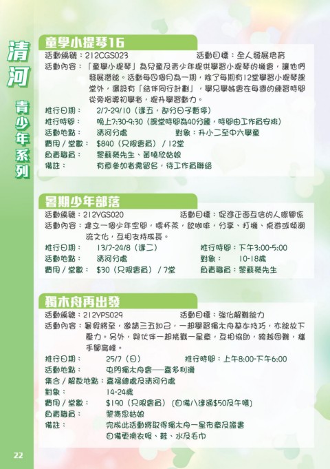 推行日期: 13/7-24/8(逢二) 推行時間:下午3:00-5:00
