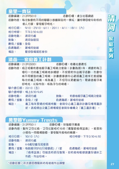 活動地點: 清河分處 對象: 有意做親子義工服務之家庭