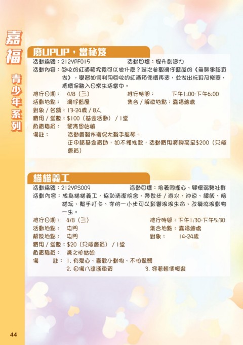 活動編號:212YPS009 活動目標:培養同理心、關懷弱勢社群