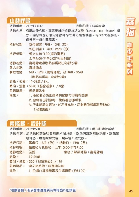 *活動名額∕形式會因應最新防疫措施作出調整 45