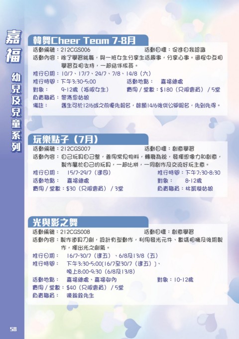 幼 推行日期: 10/7、17/7、24/7、7/8、14/8(六)