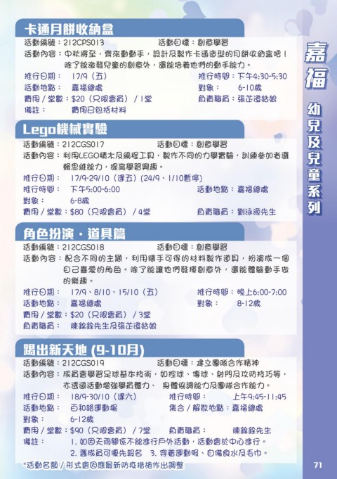 推行日期: 17/9-29/10(逢五)[24/9、1/10暫停] 童