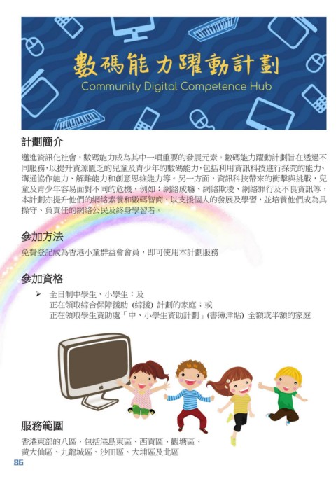 同服務,以提升資源匱乏的兒童及青少年的數碼能力,包括利用資訊科技進行探究的能力、