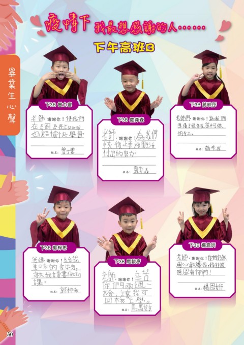 疫情下 我最想感謝的人…… 疫情下 我最想感謝的人…… 下 午高班B 下午高班B 畢業生心聲 下3B 蔣映彤 下3B 曾士睿 下3B 曾 士 睿 下3B 蔣映彤 下3B 羅弈森 下3B 羅弈森 下3B 楊恩姸 下3B 楊恩 下3B 楊恩 姸 姸 下3B 楊恩 下3B 郭梓希 下3B 郭梓希 下3B 馬駿亨 下3B 馬駿亨 30 30