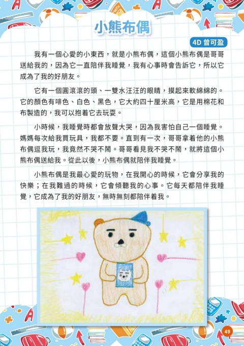小熊布偶是我最心愛的玩物,在我開心的時候,它會分享我的
