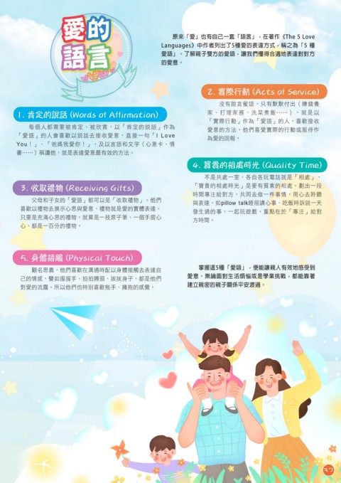 愛語」。了解親子雙方的愛語,讓我們懂得合適地表達對對方