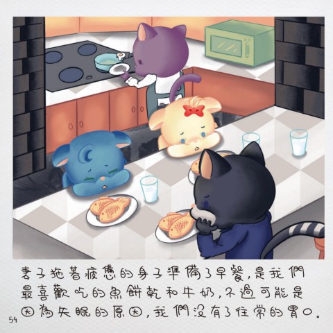 最 喜 歡 吃 的 魚 餅 乾 和 牛 奶 , 不 過 可 能 是 捏 著 鼻 子 走 向 洞 口 , 看 到 「 一 顆 圓 滾 滾 的 球 」 蹦 蹦 跳 跳