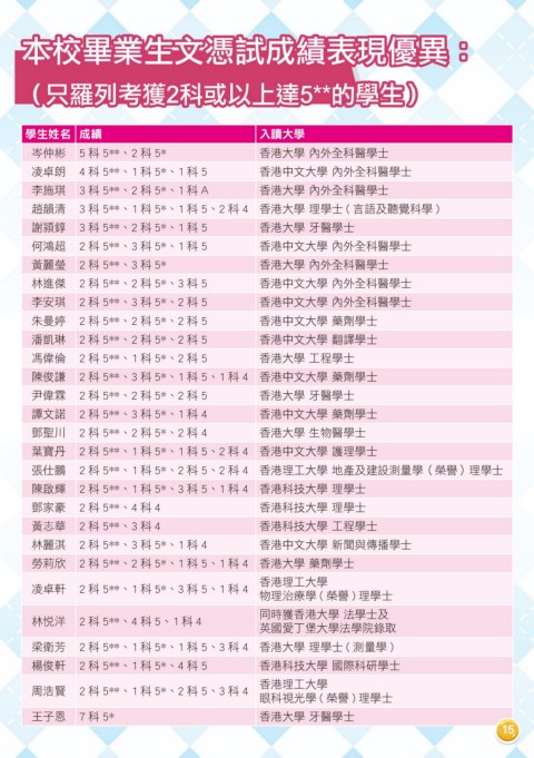 (只羅列考獲2科或以上達5**的學生)