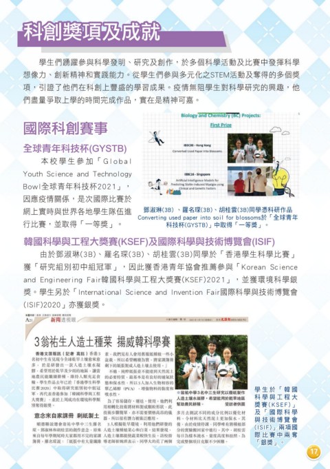 項,引證了他們在科創上豐盛的學習成果。疫情無阻學生對科學研究的興趣,他