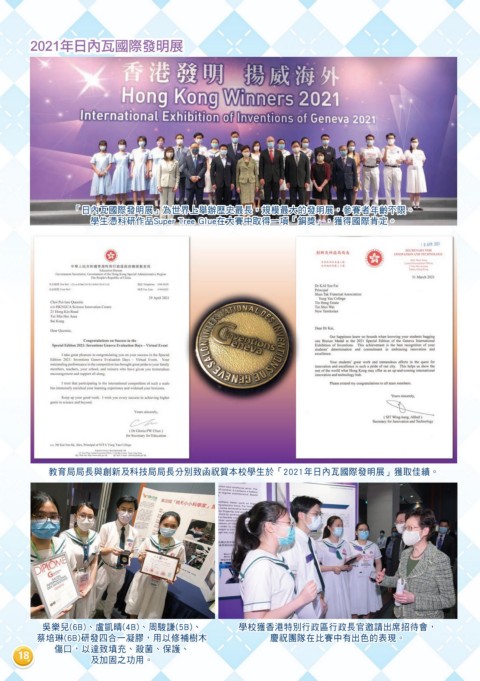教育局局長與創新及科技局局長分別致函祝賀本校學生於「2021年日內瓦國際發明展」獲取佳績。