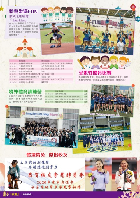 2019-2020 中學校際排球比賽 女子甲組第二組別(九龍)亞軍 推動同學參與不同類型全港性體育比賽,屢獲殊榮。