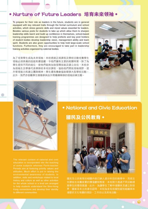 為了培育學生成為未來領袖,本校透過正規課程及學校活動培養學生