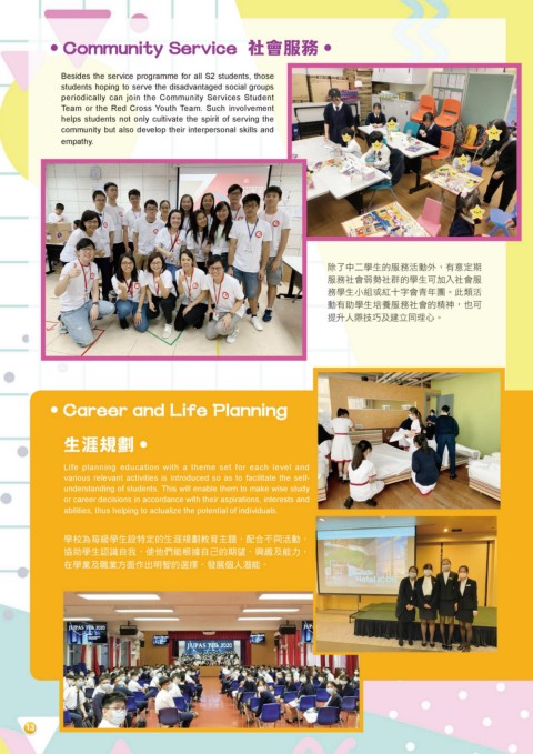學校為每級學生設特定的生涯規劃教育主題,配合不同活動,