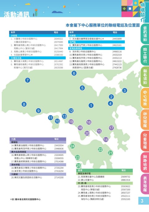 機構簡介 會員須知 同工簡介 報名須知 中心服務 幼兒發展 兒童發展 興趣培育 青年發展 3 3