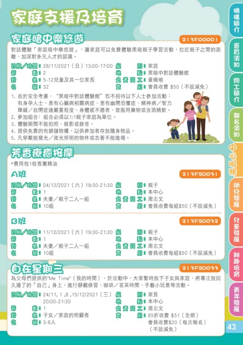 對 象 : 子女/家庭的照顧者 費 用 : 85折收費 $51(全期)