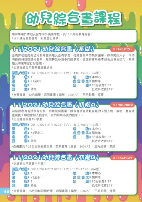 11/2021幼兒綜合畫(初階B) 213KLMI03