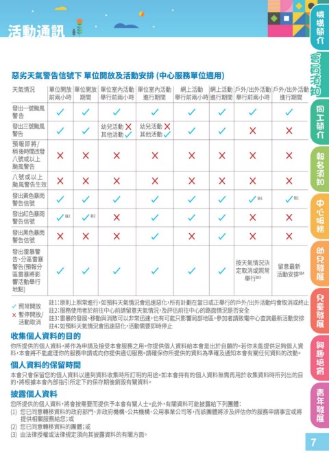 機構簡介 會員須知 同工簡介 報名須知 中心服務 幼兒發展 兒童發展 興趣培育 青年發展 7 7