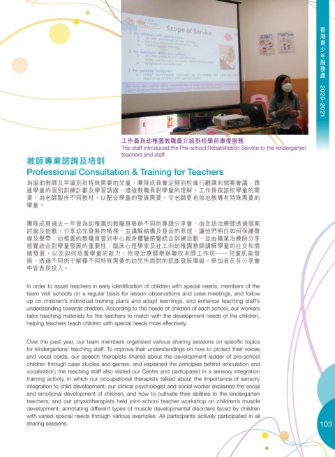 團隊成員過去一年曾為幼稚園的教職員舉辦不同的專題分享會,由言語治療師透過個案