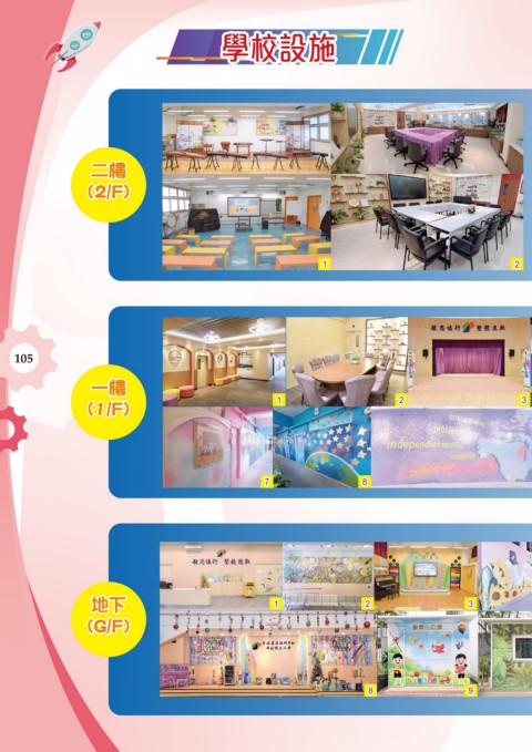 學校設施 學校設施 二樓 二樓 (2/F) (2/F) 1 1 2 2 105 一樓 一樓 (1/F) (1/F) 1 1 2 2 3 3 7 7 8 8 地下 1 1 2 2 3 3 地下 (G/F) (G/F) 8 8 9 9