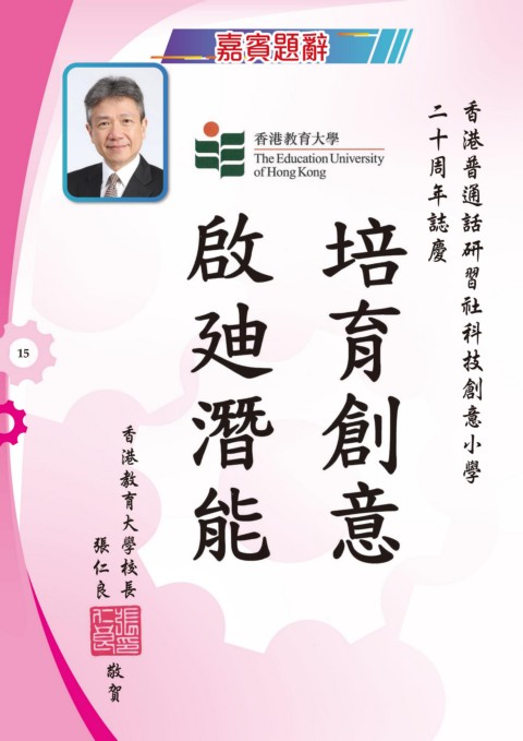 嘉賓題辭 嘉賓題辭 慶 誌 十 二 年 周 話 研 習 通 香 港 普 意 小 學 創 社 科 技 15 育 大 教 香 港 長 校 學 良 張 仁 敬 賀