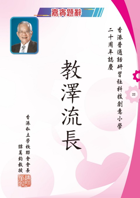 嘉賓題辭 嘉賓題辭 慶 誌 十 二 年 周 話 研 習 通 香 港 普 意 小 學 創 社 科 技 22 立 學 校 港 香 私 會 長 聯 會 鈞 萬 譚 教 授