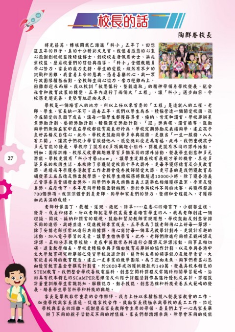 27 潛能。學校更設有「科小才藝show」,讓學生定期在校有展現才華的機會,享受多